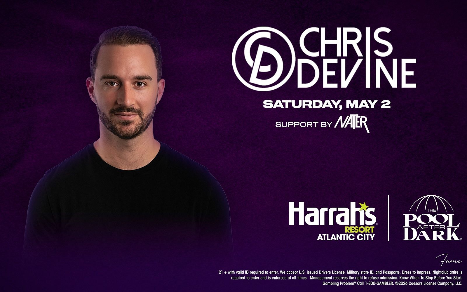 Dive into the ultimate Atlantic City nightlife experience at The Pool After Dark with music by CHRIS DEVINE, located inside Harrah's Resort!