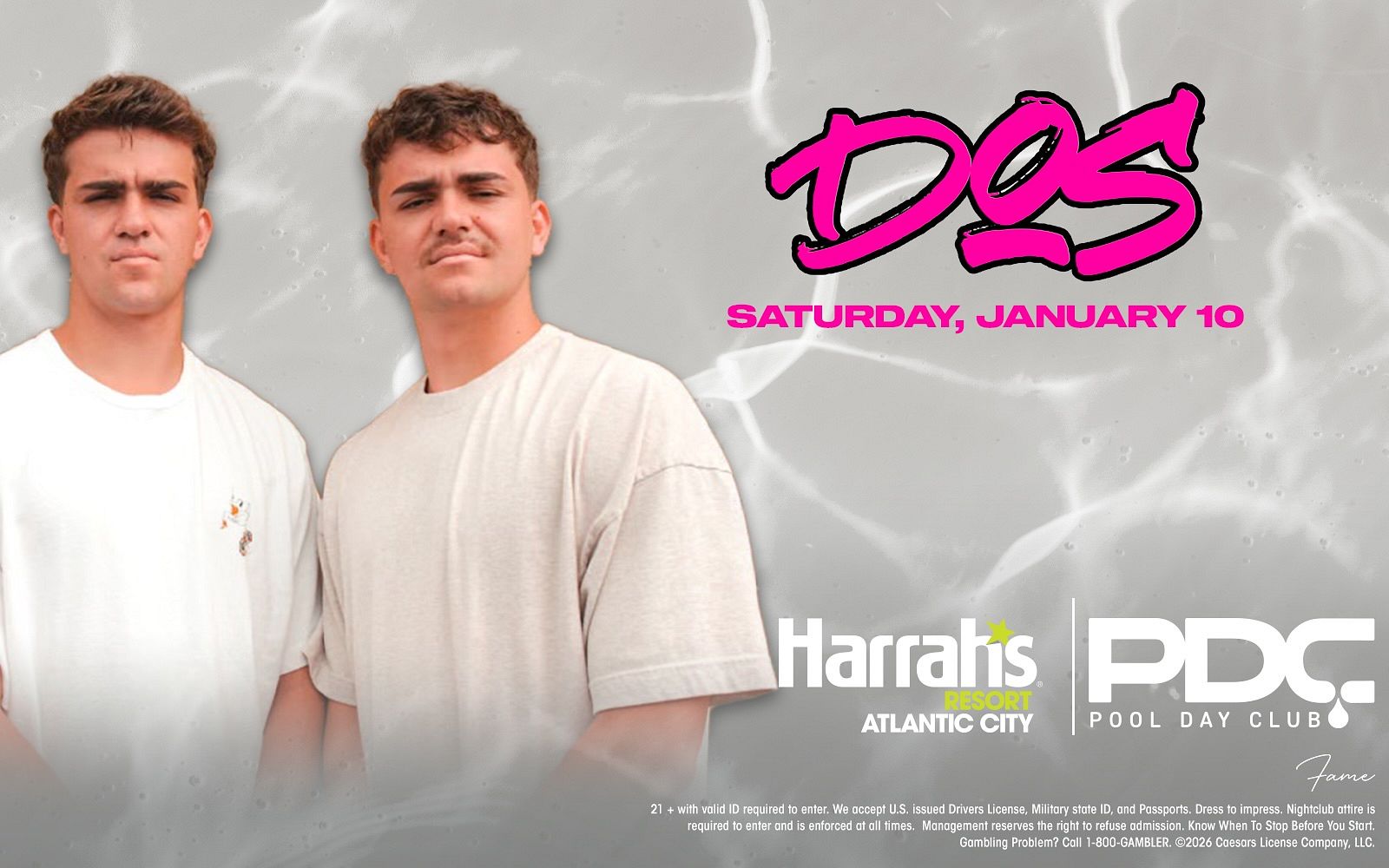 On Saturday daytime, The Pool Day Club at Harrah's Resort Atlantic City invites you to a vibrant day party with music by DOS! Join us for an unforgettable pool party experience at Harrah's Resort, where the sun, beats, and good vibes collide.